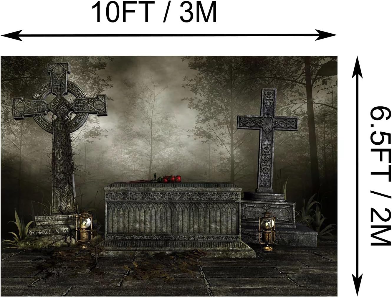 Loccor Backdrop 10x6.5FT / 3x2MFeatures 1. Material: polyester cloth, it is an upgraded material, compared with vinyl it has Washable, ironed, and non-fading advantages.2. Color: Lifelike color, high resolution and quality & not easy fade. Use high-end digital technology to restore the design details, it makes the color more vivid and attractive. Different lighting will have different shooting effect, you can try to adjust the light to make your photos better!3. Apply: Halloween, Children, Holiday, Birthday, Party, and any major event or decoration etc. It's suitable for any photographers of all levels.Prompt♥ Only one piece backdrop and backdrop Stand or Clips are not included.♥ The backdrop is folded for shipment, it will cause creases. If you have a garment steamer or iron, I recommend ironing it before using it.Here are two tips for ironing:① Garment Steamer(★★★★★)Hang the backdrop vertically and iron the back surface with garment steamer, then it will be smooth again.② Steam Iron(★★★★☆) Iron the back surface with steam iron but not dry iron (medium temperature), then you will notice that the creases are gone.It is my honor to serve you, and your satisfaction is my pursuit. If you have any questions, please contact me, I will actively and properly resolve it for you.Wish you a happy life and all the best!