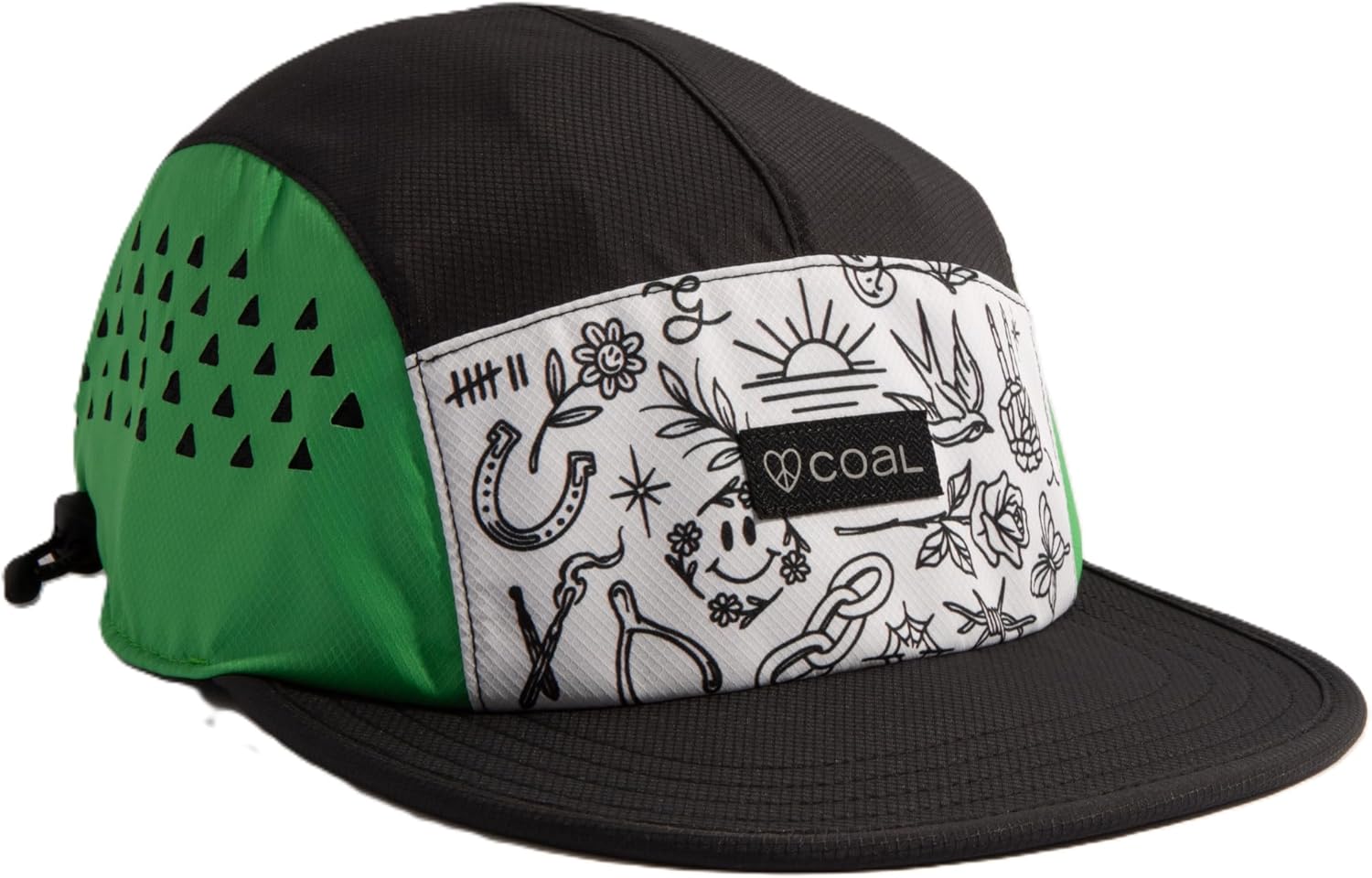 This microfiber 5 panel features mesh side panels and a moisture wicking sweatband to cool you off when the heat is on. Choose from solid black, vibrant color blocking or reflective splatter print- all provide the recipe for a chilled out piece.