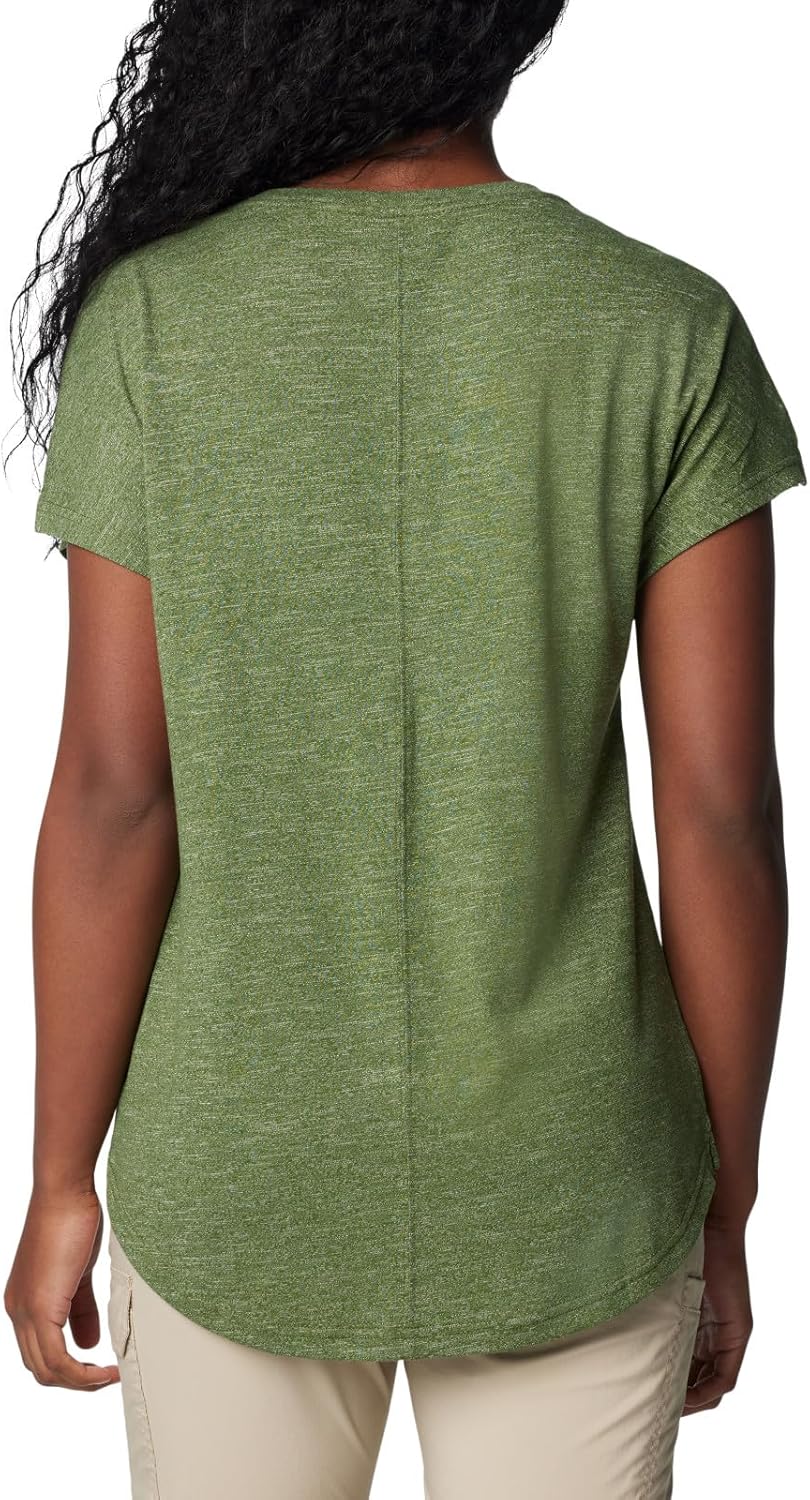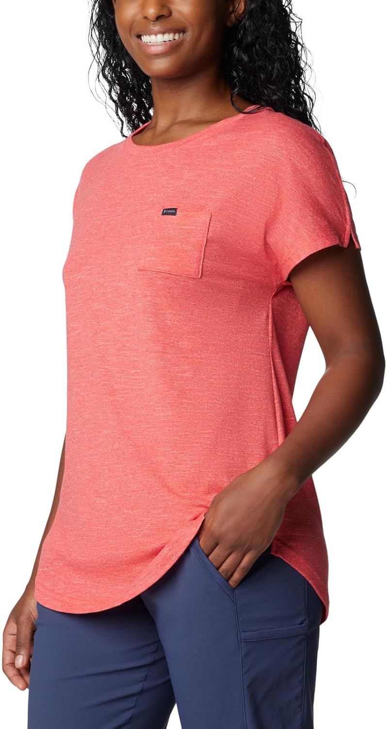 The Columbia Women's Cades Cape Tee Shirt, is made to perform in the middle of summer – with our unique sweat-wicking technology keeps you dry, cool, comfortable and focused on the path in front of you. This sun-loving T-shirt features our signature Omni-WICK fabric designed to quickly moves perspiration from the skin into the fabric where it spreads across the surface to quickly evaporate—keeping you cool, dry and comfortable. The tight weave construction adds a multipurpose pocket at the chest, while the crew neck fit make all-day wear and movement comfortable. Our signature logo is featured on the chest for subtle style. This Columbia's T-shirt comes in multiple sizes and colors. Extended sizing available. Active and Regular Fit. To ensure the size you choose is right, utilize our sizing chart and the following measurement instructions: For the sleeves, start at the center back of your neck and measure across the shoulder and down to the wrist. If you come up with a partial number, round up to the next even number. For the chest, measure at the fullest part of the chest, under the armpits and over the shoulder blades, keeping the tape measure firm and level.