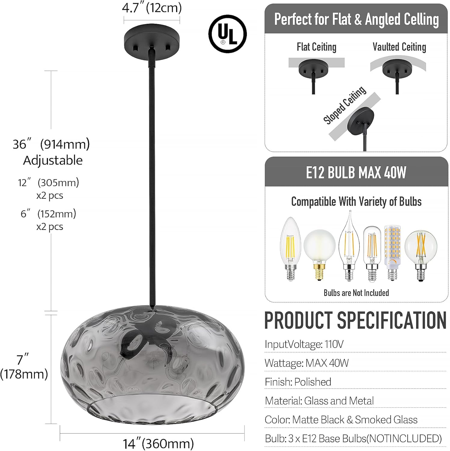 | Model Name | Hammered Glass Pendant Light with Hanging Rods |