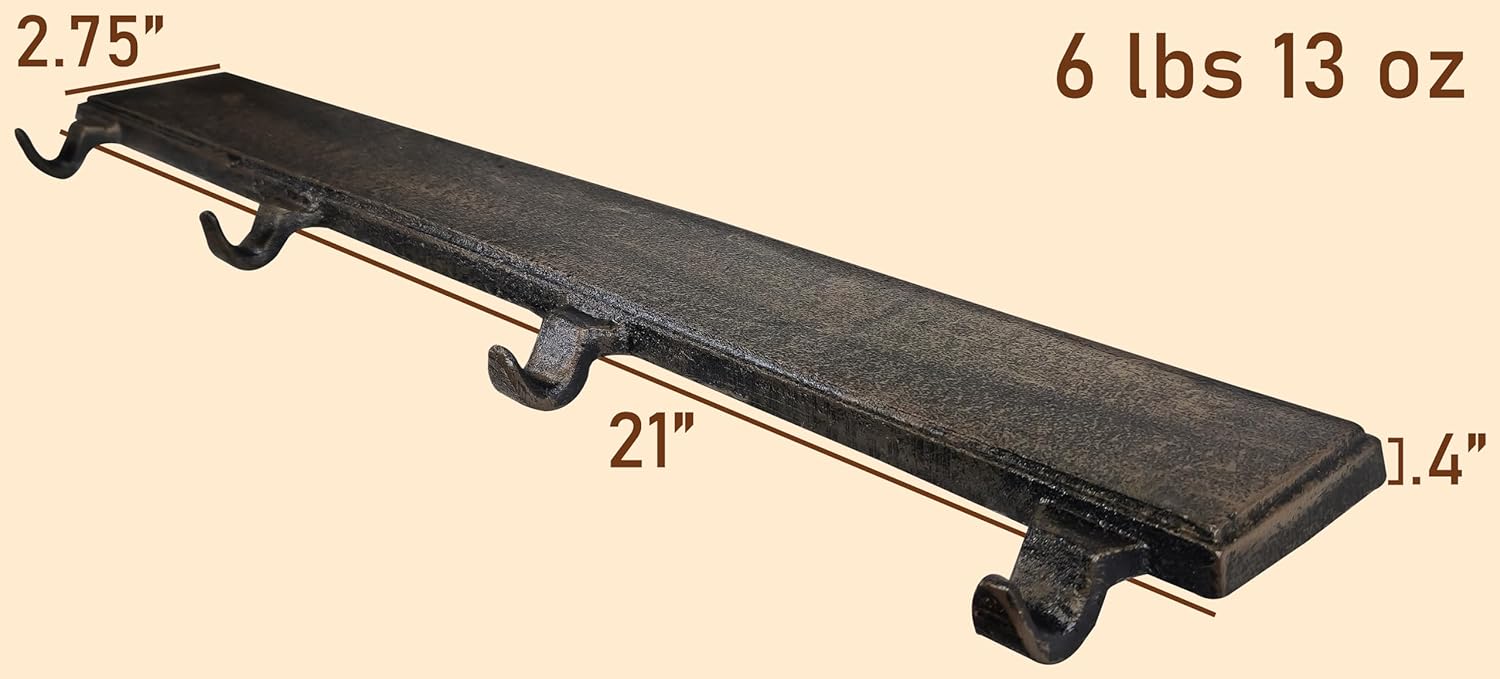 Set of 2 long bases, total 6 hooks. Sturdy and heavy-duty 100% Cast Iron stocking hook, one base with 3 hooks. Exclusively designed & made by Lulu Decor. Each Christmas Stocking hook weighs approx. 4.4 lbs & measures 14.75 x 3 inches. Low profile stocking holder, decorate your mantel with your own decoration and the base hook remains hidden.