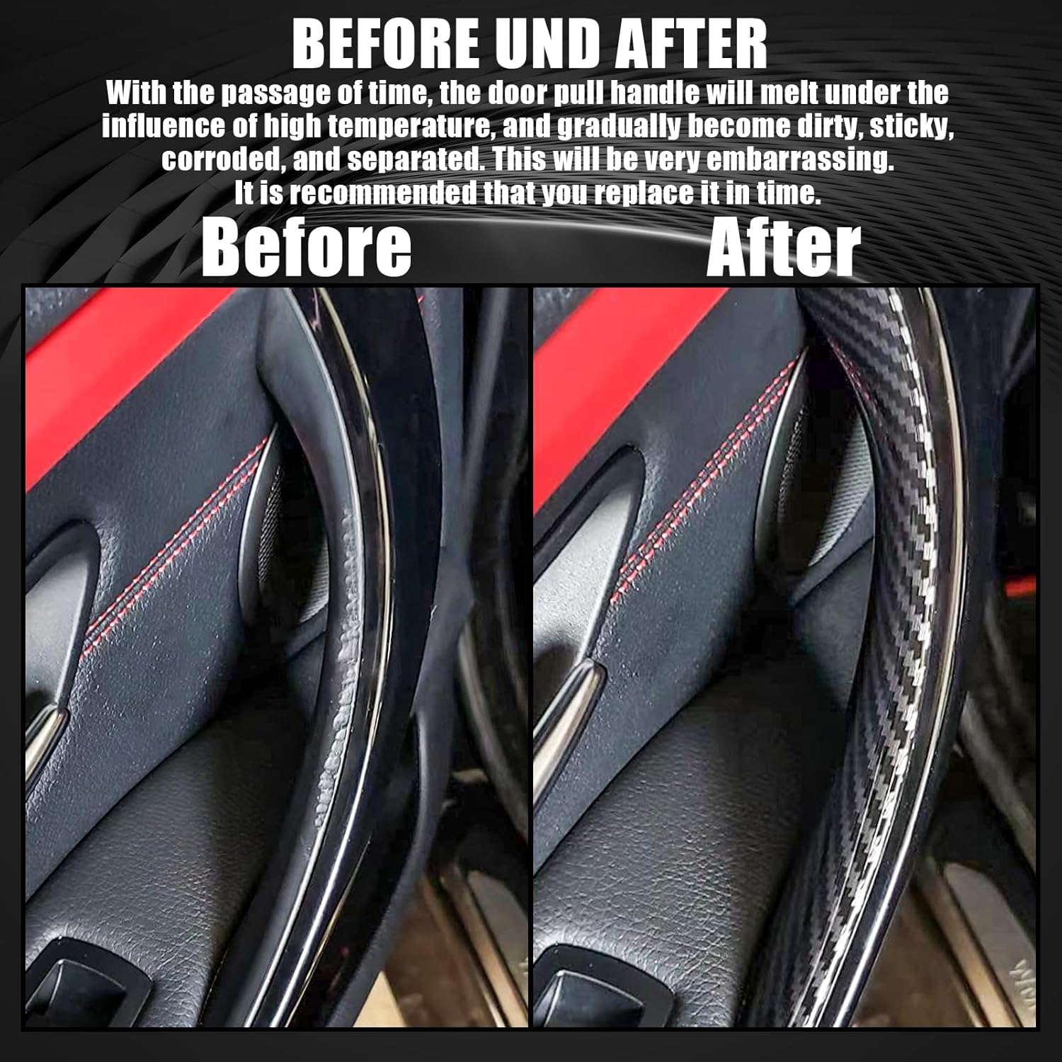 • 【Direct Replacement】: With the passage of time, the door pull handle will melt under the influence of high temperature, and gradually become dirty, sticky, corroded, and separated. This will be very embarrassing. It is recommended that you replace it in time. The door pull handle covers meets or exceeds the oem standard, and has passed the factory test, perfectly matches the original car, and can be installed directly